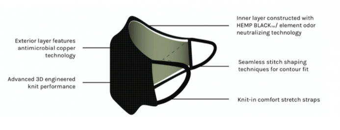 Our new Hemp infused fibre masks have been proven to be stronger, more absorbent and more durable than any other regular cloth mask. The Hemp infused adaptive fibers harness the power of odor neutralising hemp flower extract, strategically engineered for protection through multi-layer 3D knitting.